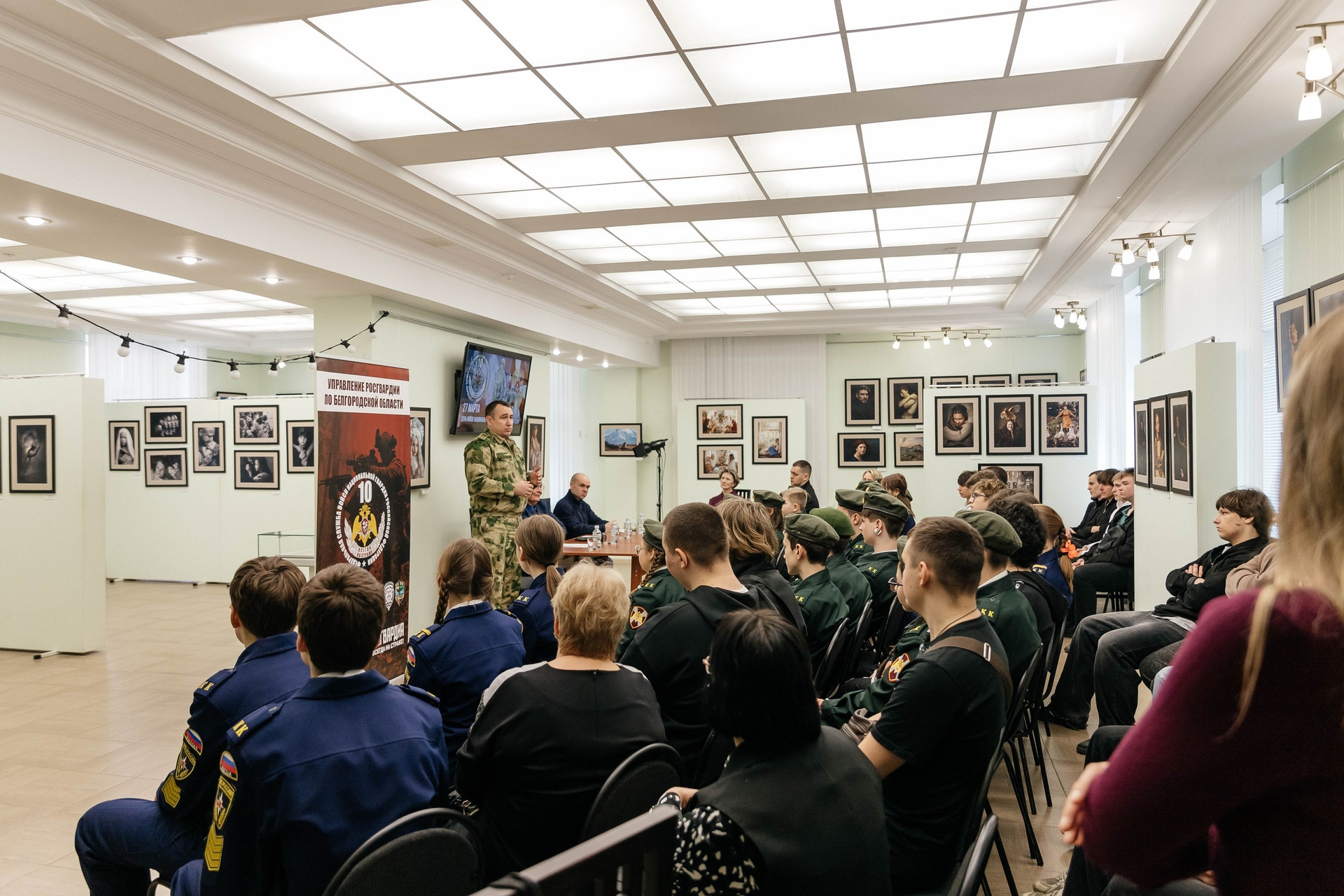 За это время на территории выставочного зала среди фоторабот Ассоциации фотографов «Евразия» состоялся круглый стол «Преемственность поколений: войска НКВД, пограничники и Росгвардия», была проведена экскурсия с рассказом о разнообразии направлений и жанров современной фотографии для курсантов Юридического института, выступил театр «Молоко» с отрывком из спектакля «Русалка».